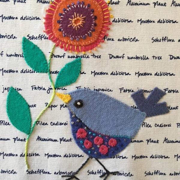 Wendy Williams Pre-cut Wool Applique Kit - Little Bird - Blue. This fun kit is perfect for those who wish to jump right into their hand applique project without spending time cutting out the fabric pieces. This kit is made with 100% premium grade Australian Merino Mill Dyed Wool.